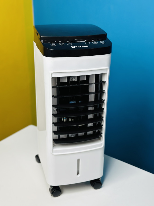 The Extonic Air Cooler (ET-C701) has three fan speed settings: low, medium, and high. You can adjust the speed according to your preference. The air cooler is capable of automatically oscillating horizontally to distribute the cool air across a wider area. You can manually adjust the vertical direction of the airflow to target specific areas or adjust the airflow angle as needed. The air cooler is equipped with a filter that helps humidify the air, providing a cooling effect. The air cooler has a tank that is compatible with both ice and water. This allows you to add ice cubes or water to enhance the cooling effect. The air cooler is designed with a water limit protection switch, which ensures that the water level does not exceed a certain limit for safe operation. The air cooler features a unique IMD (In-Mold Decoration) molding process, which provides a visually appealing and durable exterior design. The air cooler’s water tank has a dedicated holder for ice boxes, allowing you to easily add ice for additional cooling. The air cooler is equipped with sturdy casters, making it easy to move the unit around to different locations. The air cooler operates on AC220-240V with a frequency of 50/60Hz and consumes 65W of power.